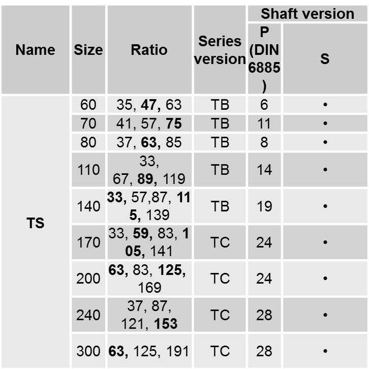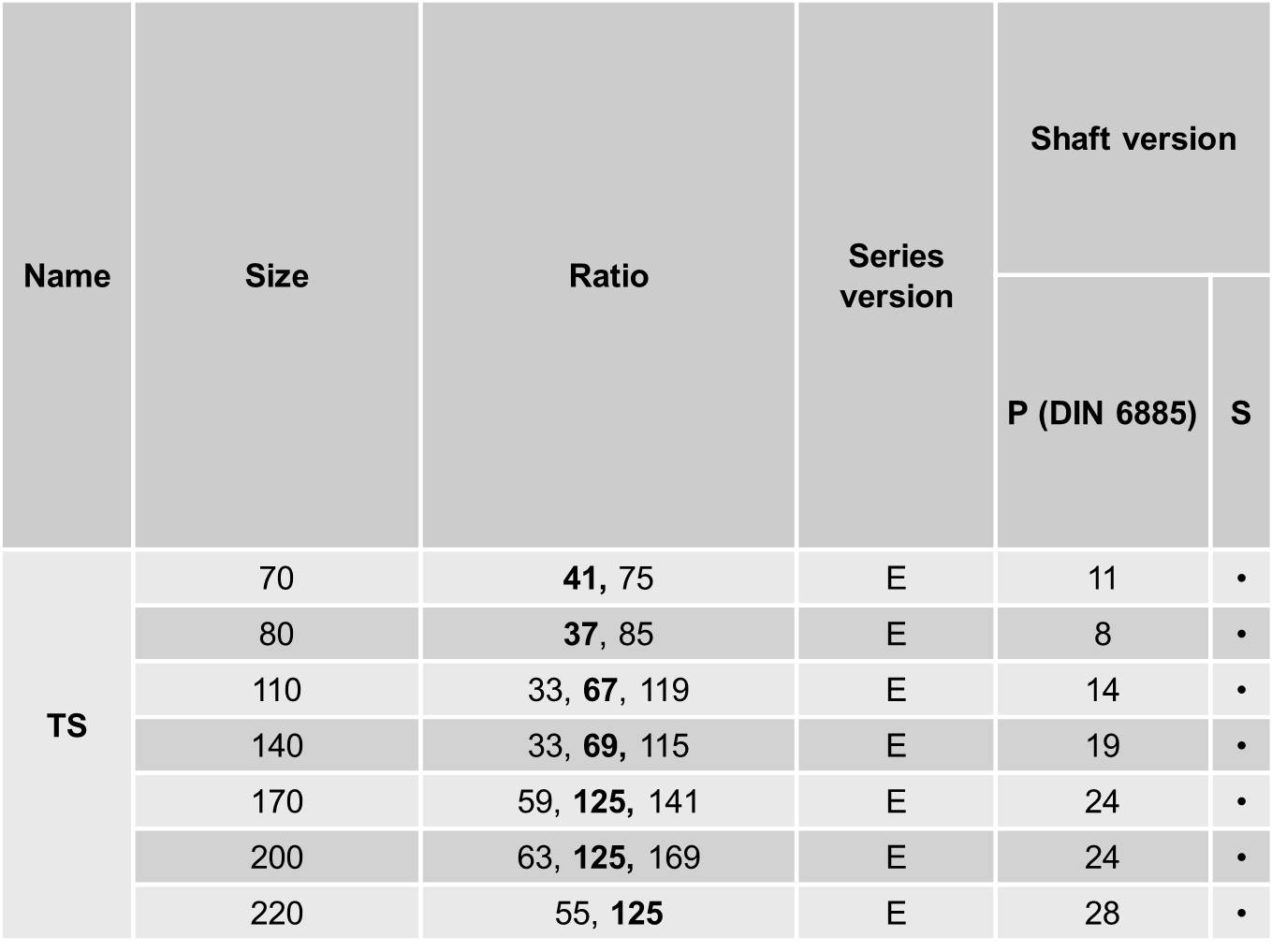 The ratios highlighted in bold are recommended by SPINEA as optimal versions in terms of price and delivery.