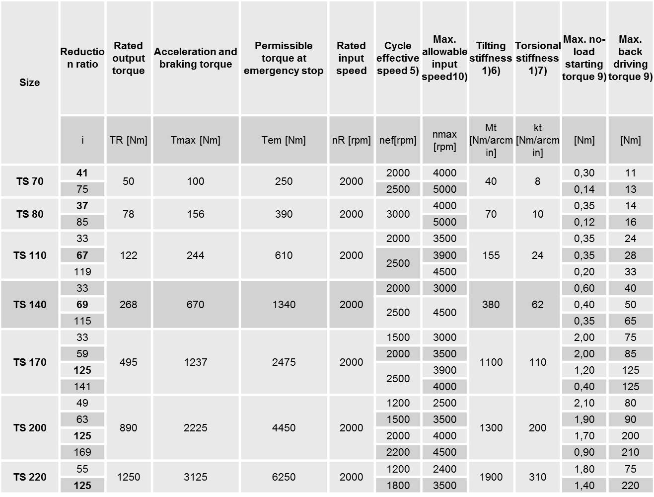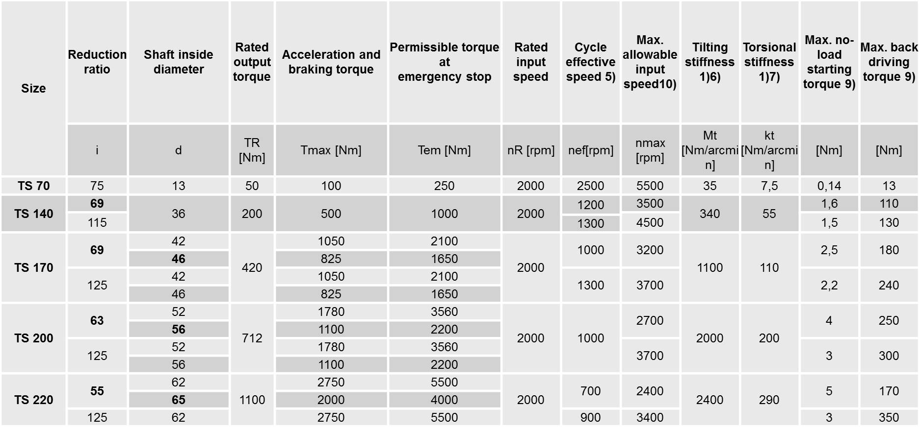 8/ The values of the parameters are informative. The exact value depends on the specific version of the high precision reduction gear.