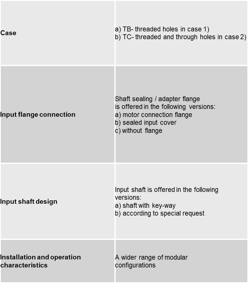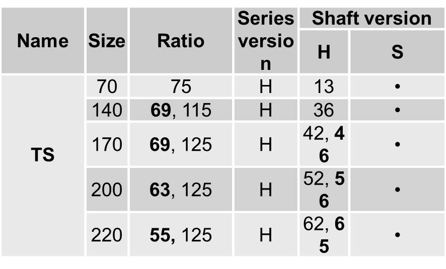 Note: An example of an ordering code of a modified H series TwinSpin reduction gear with a motor flange: TS200 – 125 –H– H56 – M235 – P231. The markings M235 and P231 for a specific modification are defined by the manufacturer.