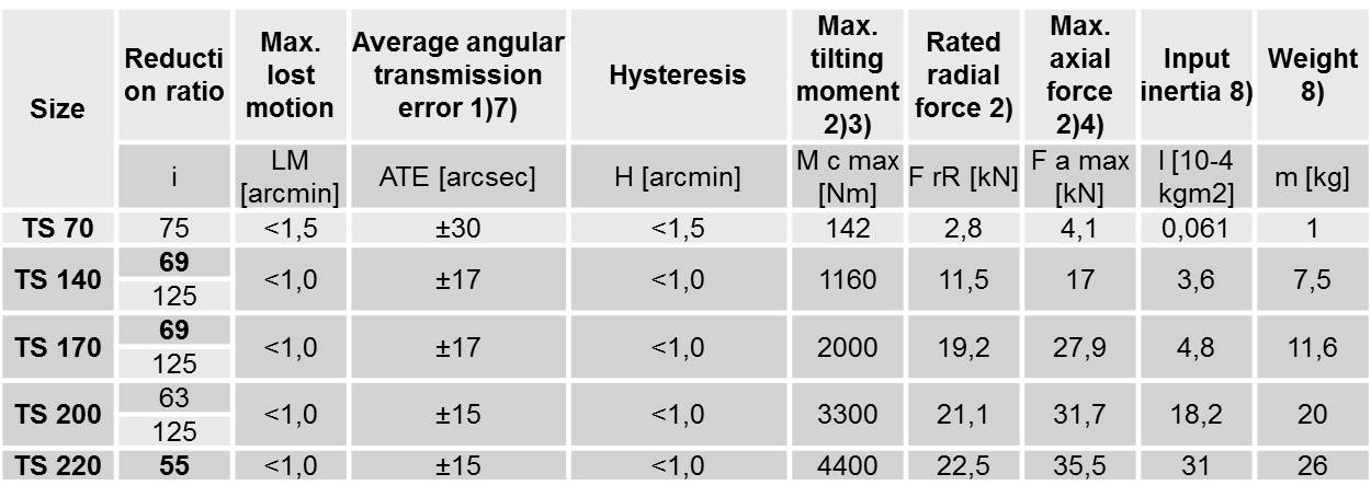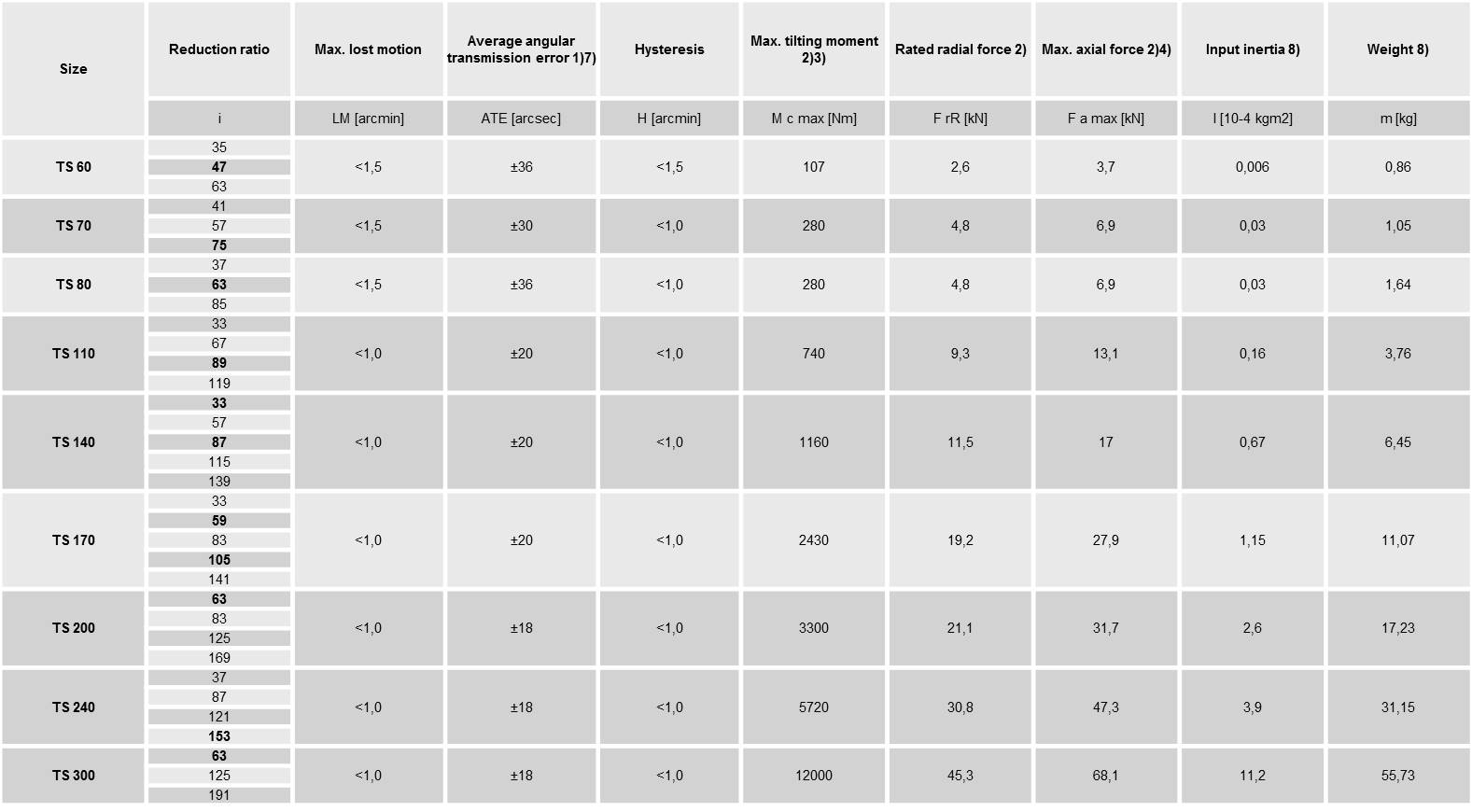 7/ The parameter depends on the version of the high precision reduction gear, ratio and lost motion.