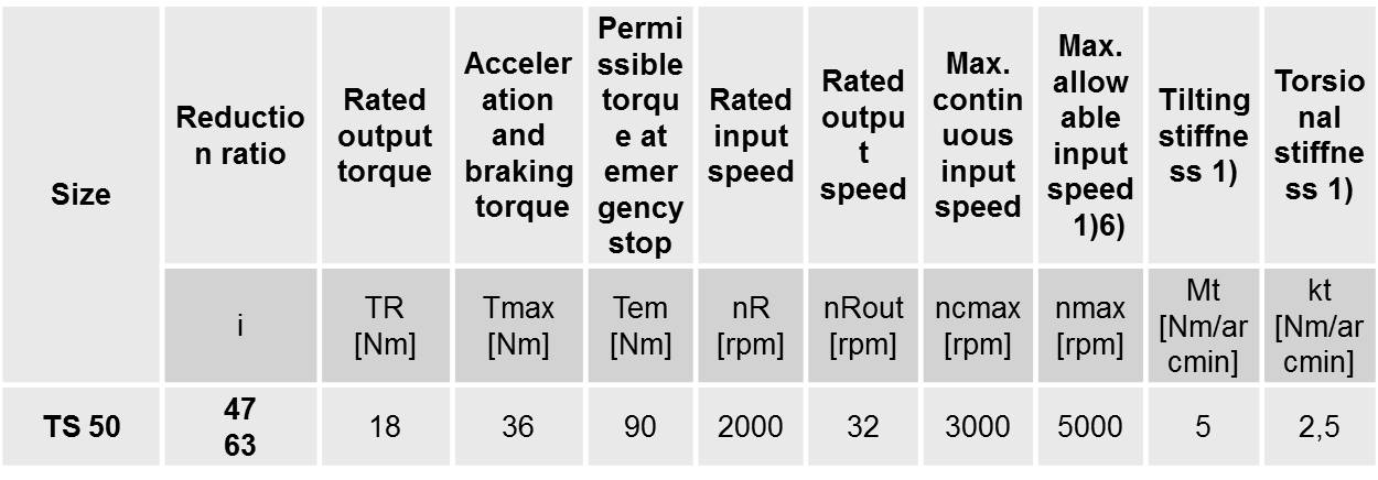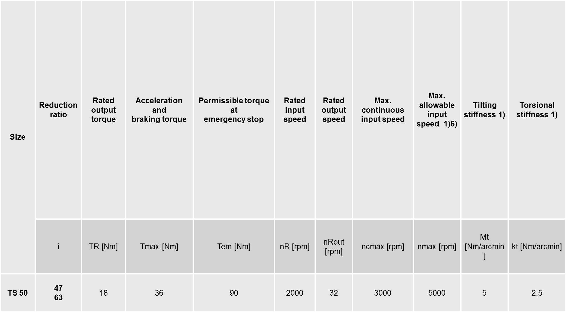 2/ Load at output speed nRout=nR/i. for TS 50 M it is 32 [rpm].