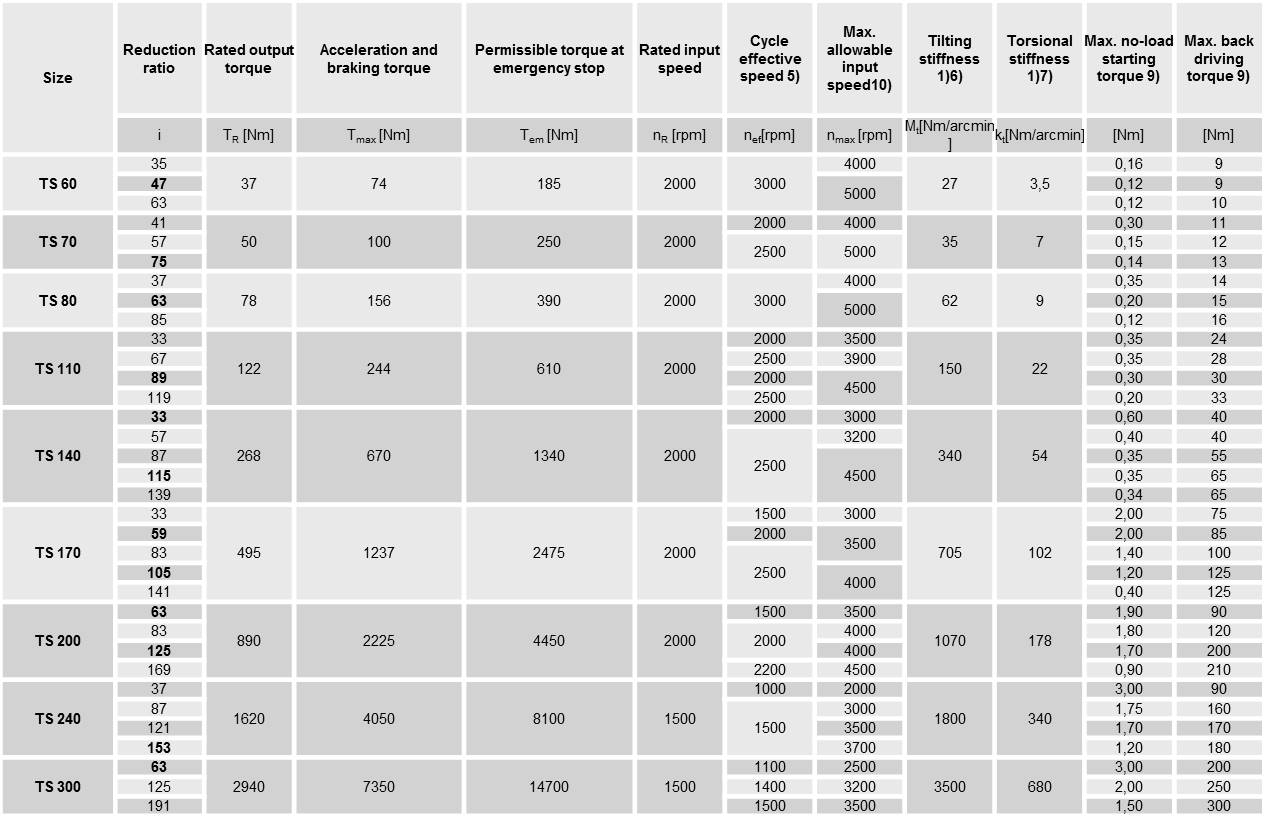 5/ The effective speed can also be higher for lost motion bigger than 1 arcmin and for low values of oil viscosity. For lost motion lower than 0,6 arcmin please consult the effective speed with the manufacturer.